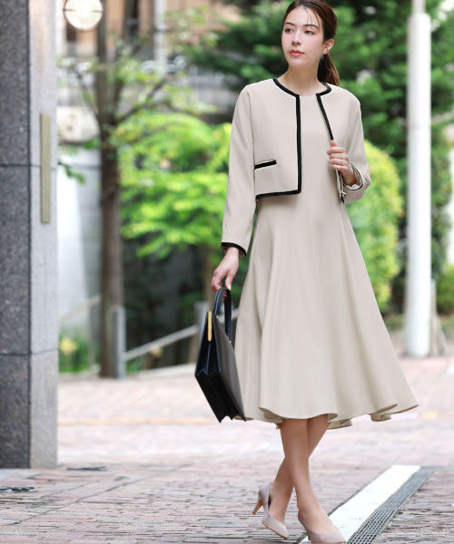 4. ノーカラージャケット&Aラインワンピースの2点セットセレモニースーツ