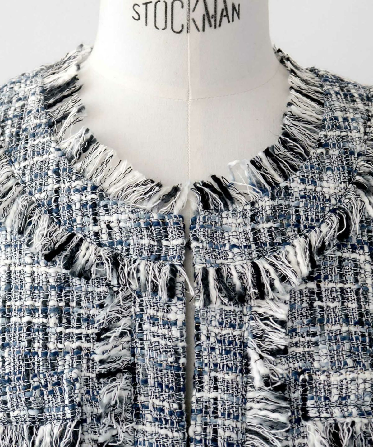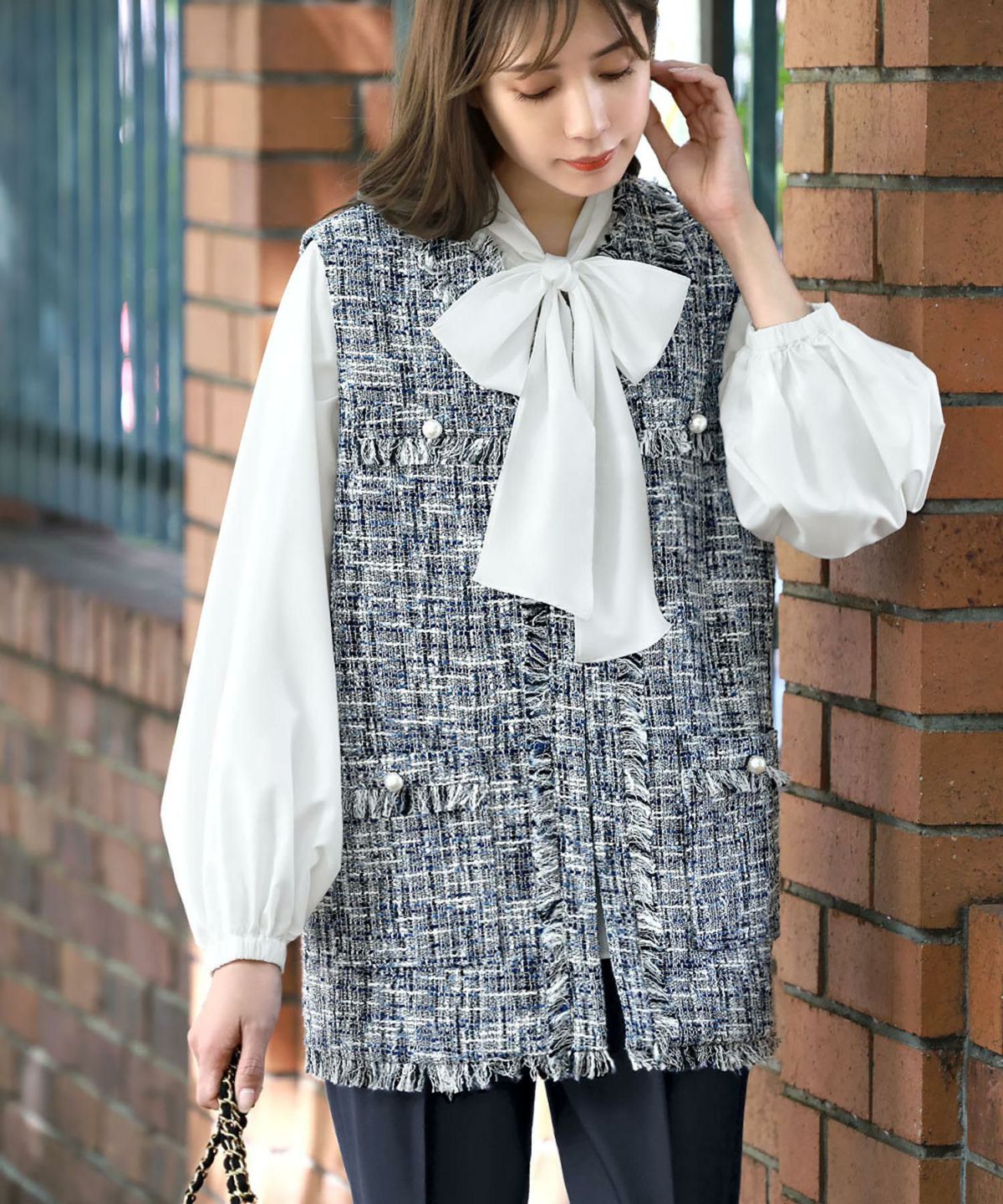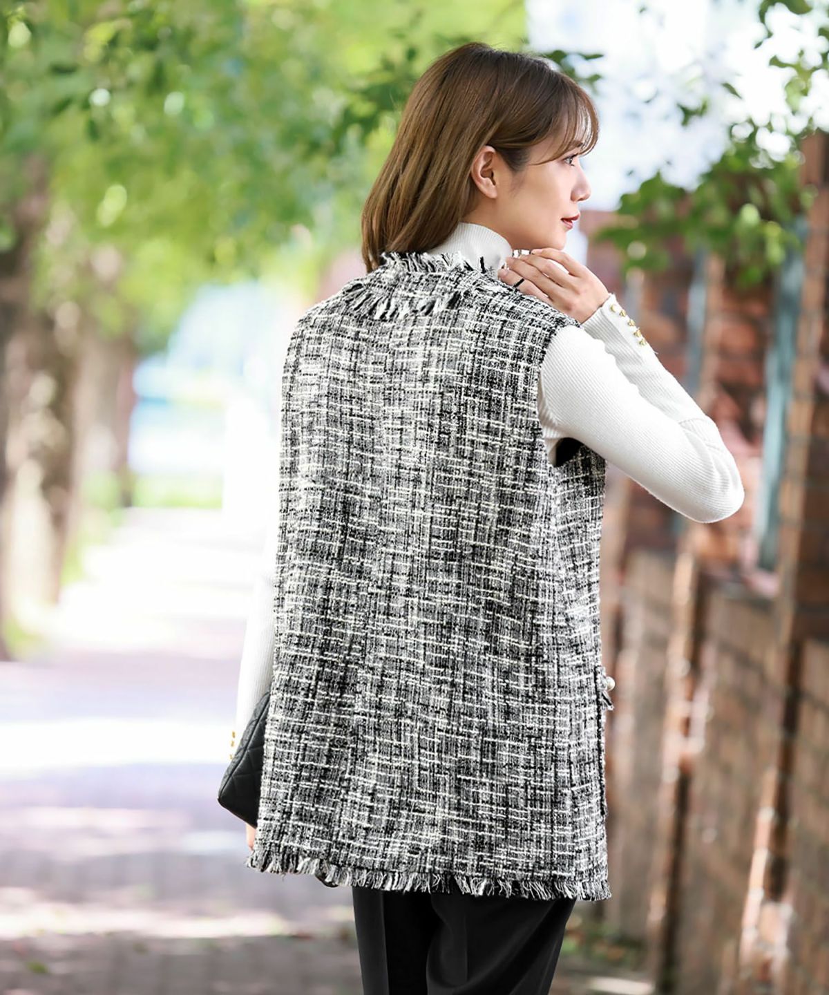 ゆったりとしたシルエットとアウトラインに沿ったフリンジ仕様が程よい抜け感をプラス。