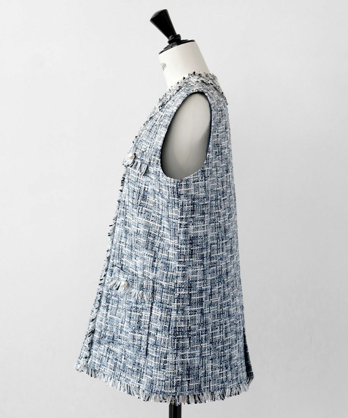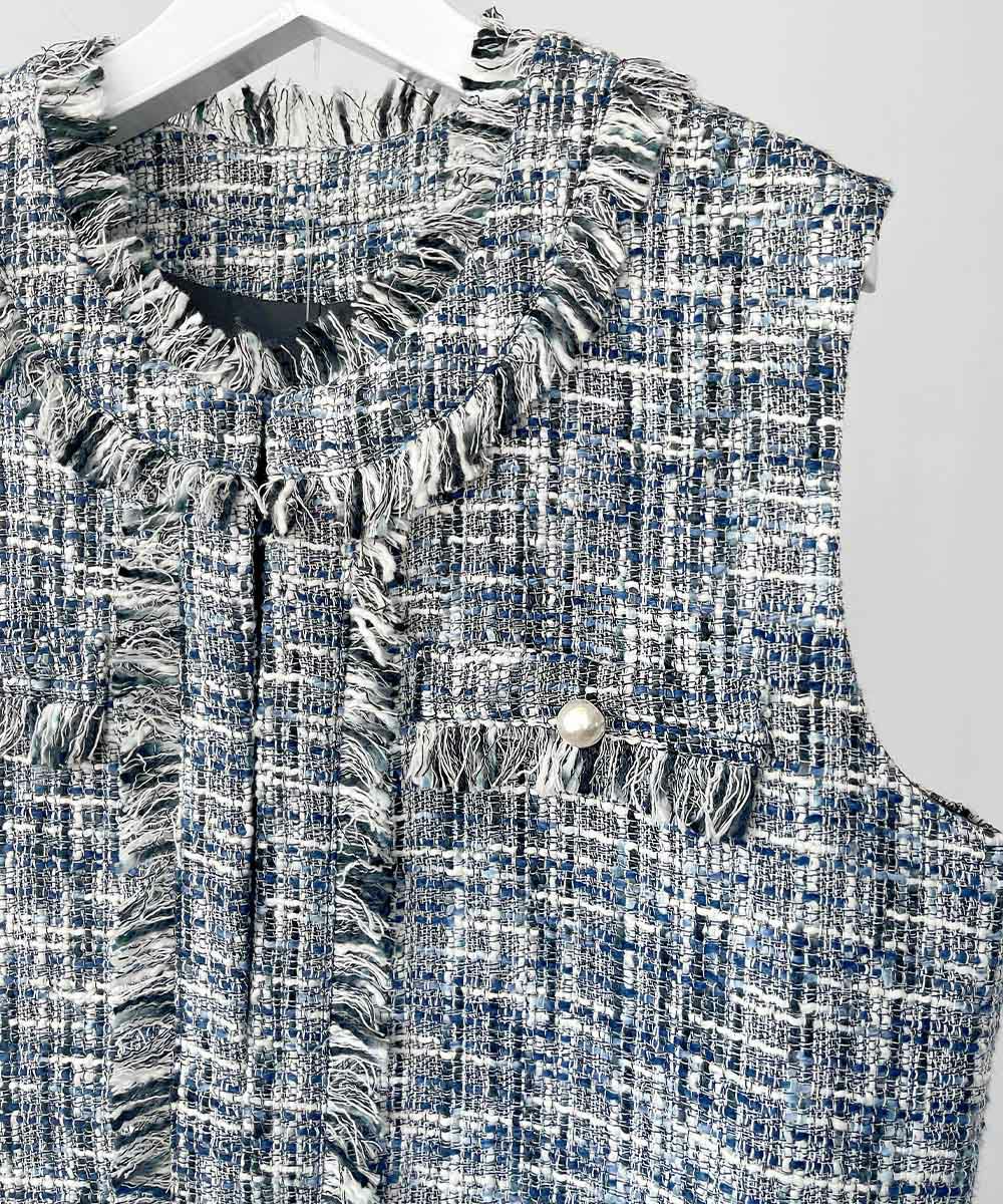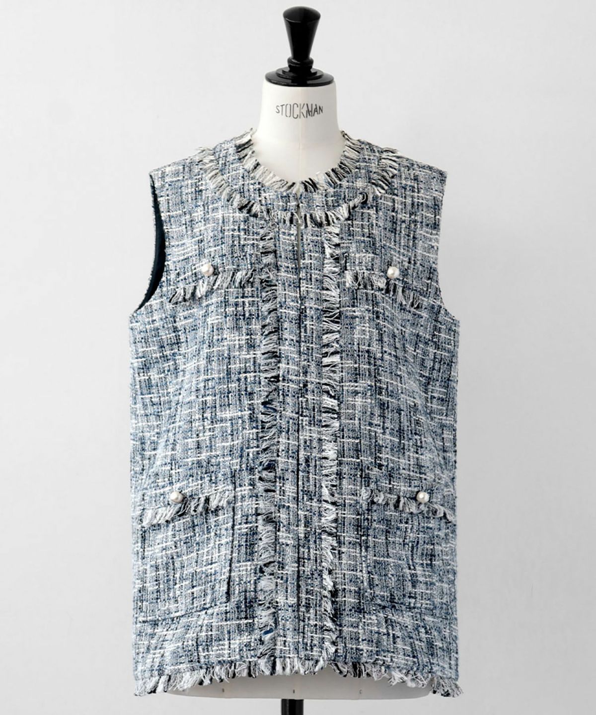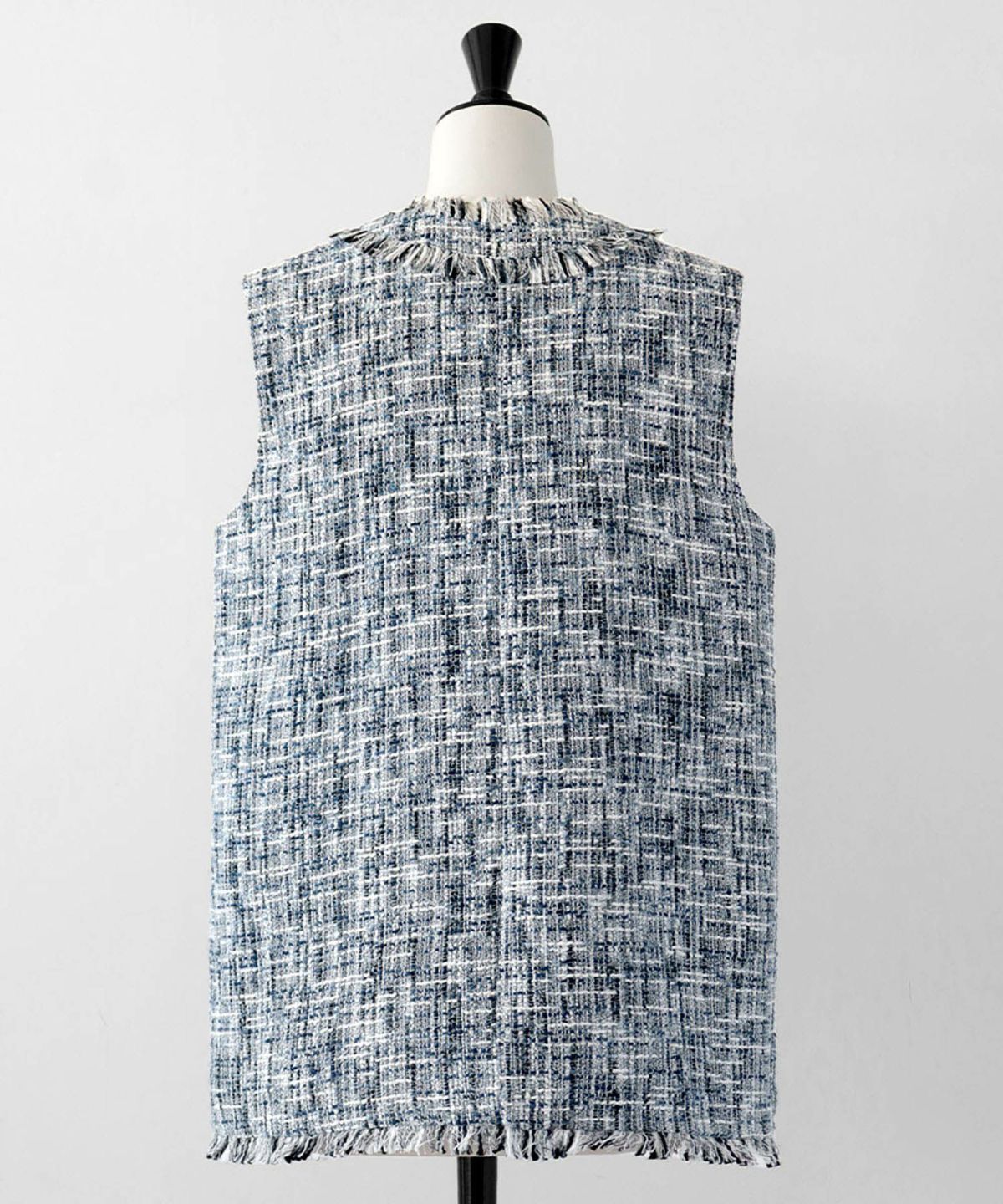ゆったりとしたシルエットとアウトラインに沿ったフリンジ仕様が程よい抜け感をプラス。
