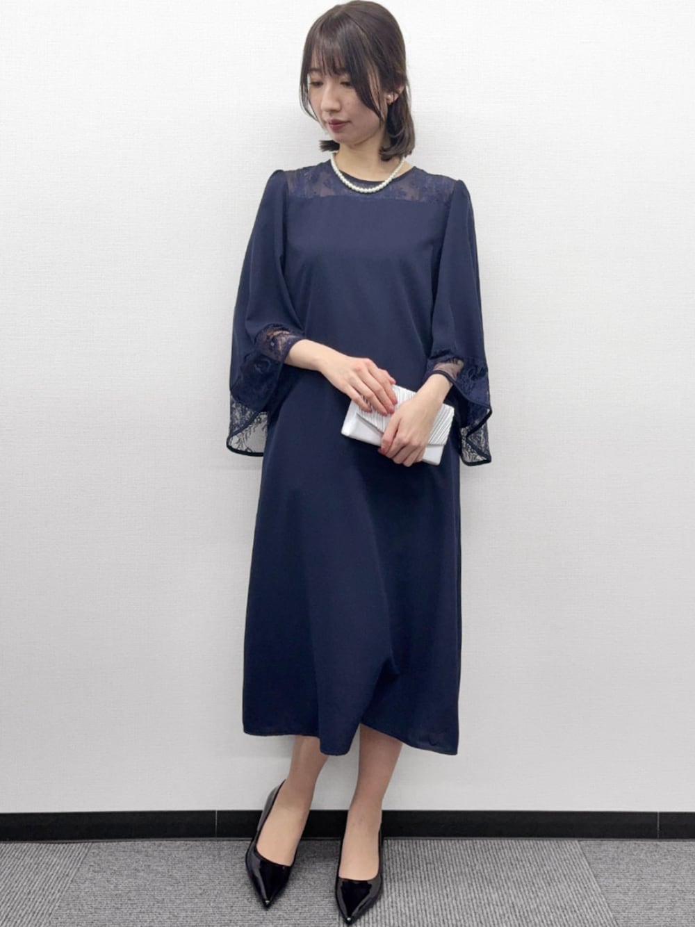 落ち感のあるすっきりとした緩やかなIラインシルエットは、体型カバーもしつつ華やかさもプラスする上品な1着♪