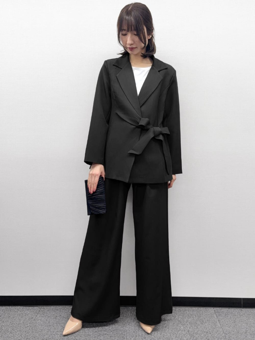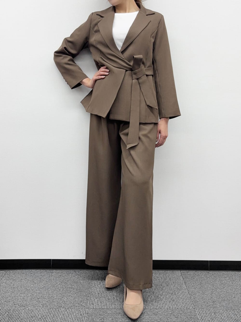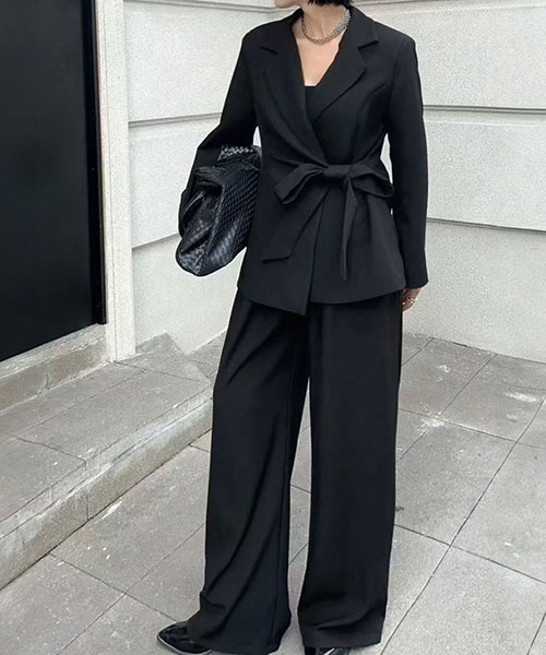 5. リボン前留めテーラードジャケット&ワイドパンツ2点セットスーツ