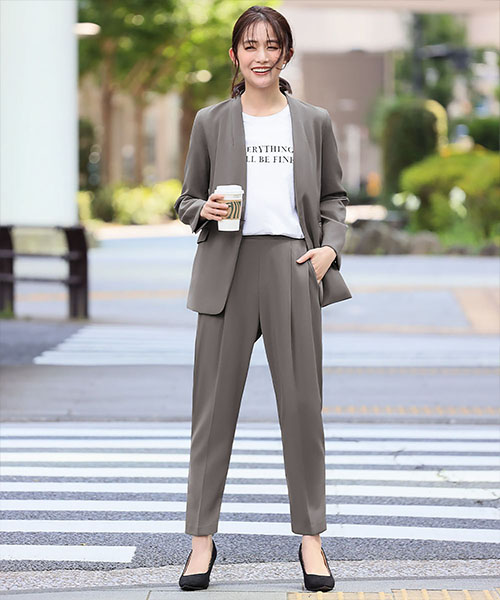 5. 【選べる2スタイル】洗えるカラーレスジャケット・テーパードパンツorスカートの2点セットスーツ