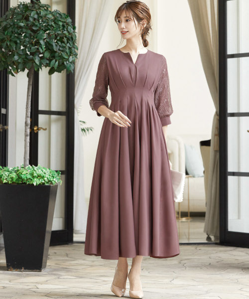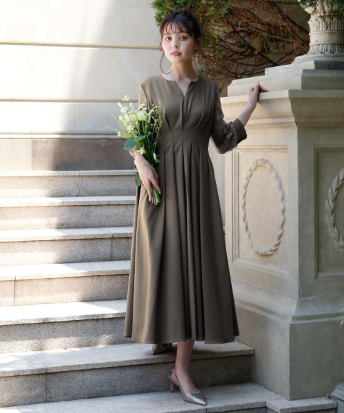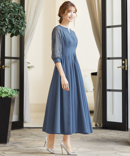 4. 【低身長さん向け】【~4Lサイズ】コンシャススリーブXラインキーネック結婚式ワンピースドレス