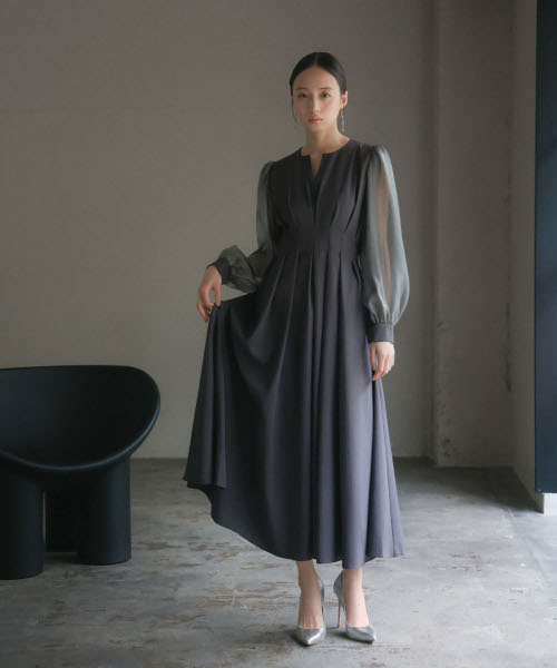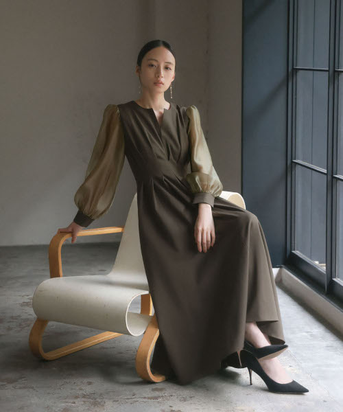 身頃はしっとりとした落ち感のあるジョーゼット生地を、袖は透け感のある繊細な素材を使用しています。