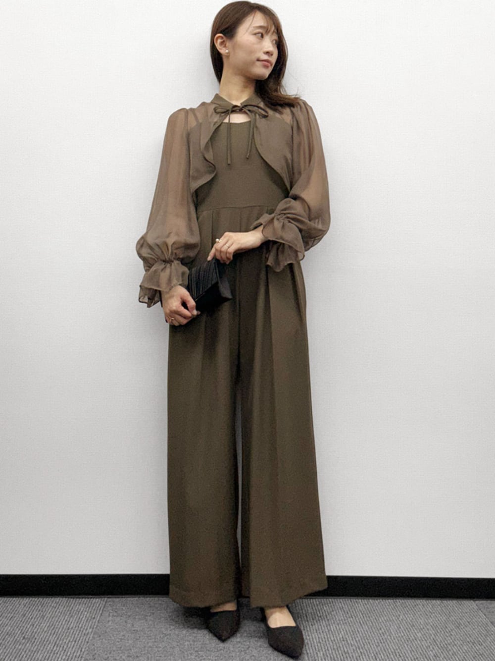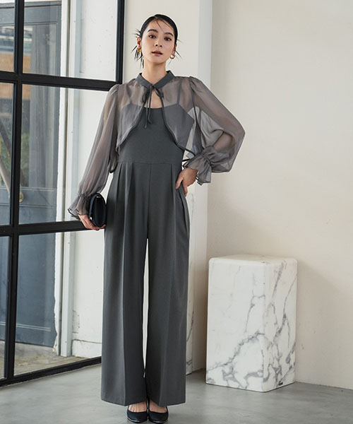 オールインワンはしっとりとした落ち感のあるジョーゼット生地を、ボレロは透け感のある繊細で柔らかなシフォン素材を使用しています。