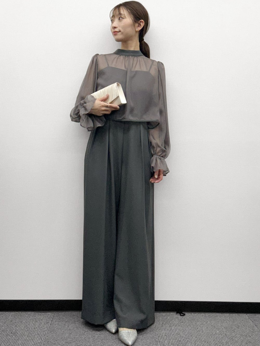 さりげなく透けるシフォンで抜け感をプラス。