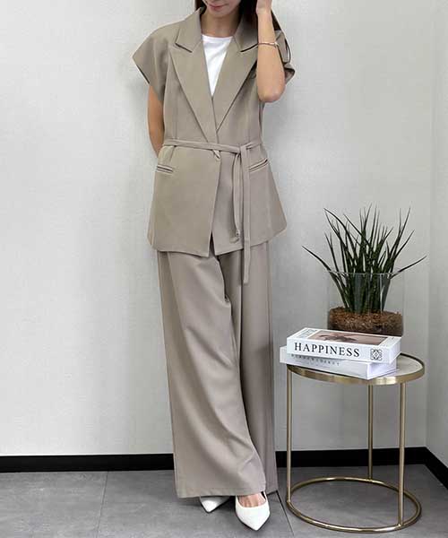 Flolia(フロリア) ベルト付きテーラードジレワイドパンツ2点セットアップ