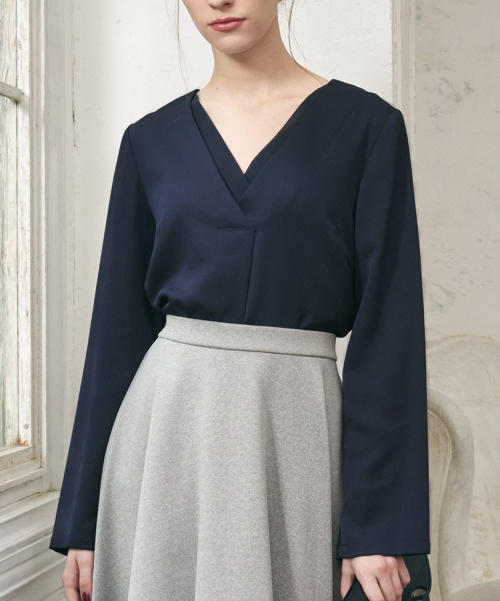 首周りが程よく開けたVネックデザインはアクセサリーとの相性も良く、適度な肌見せで上品な大人の女性をプロデュース。