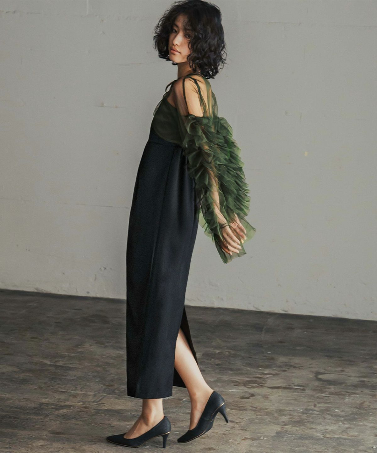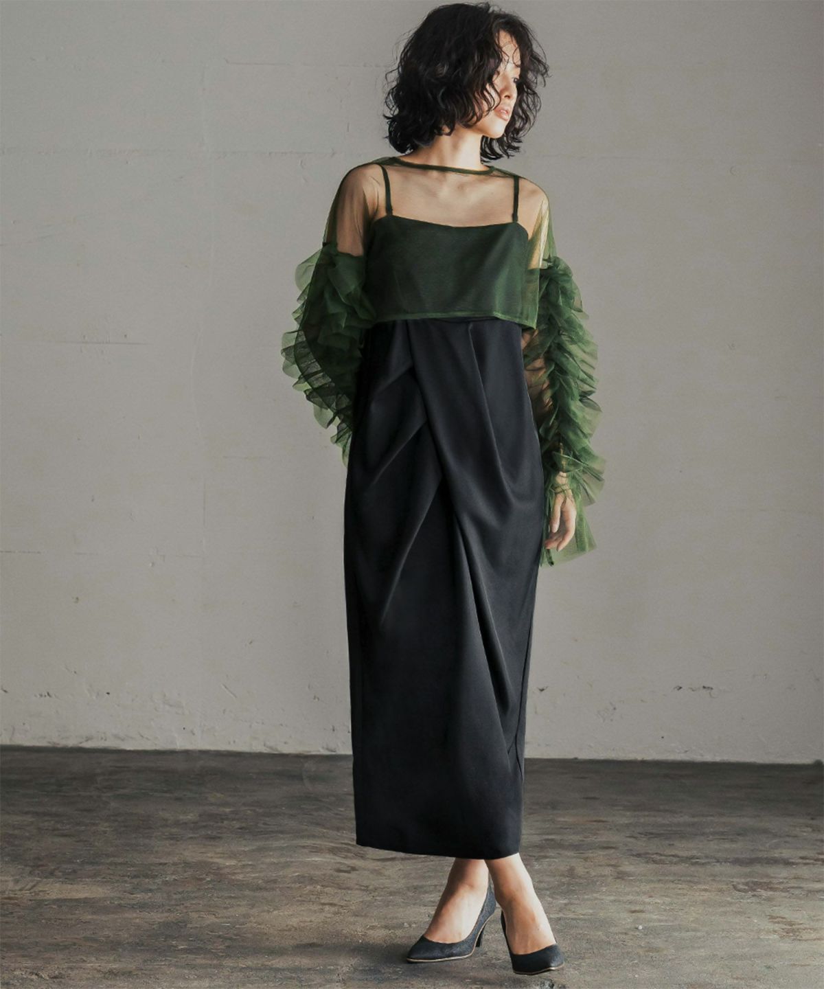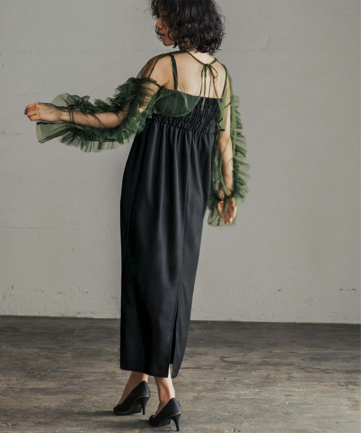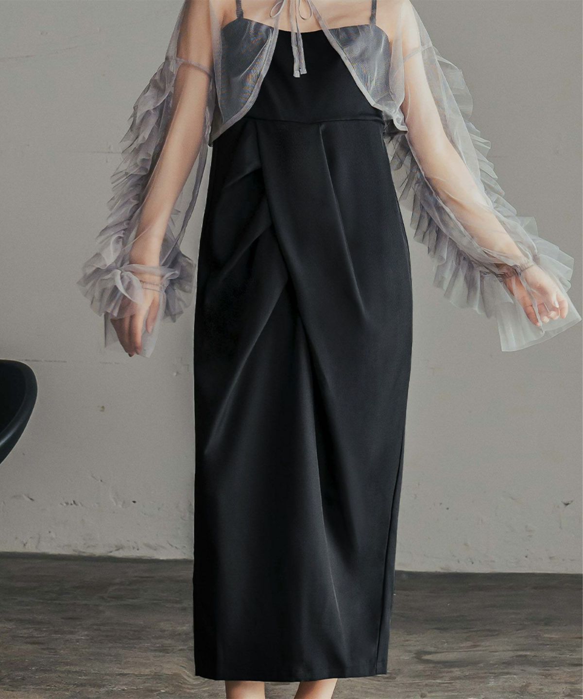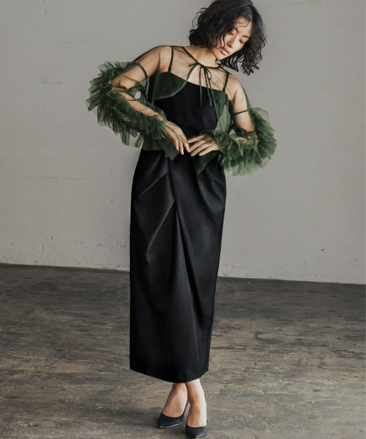 5. チュールフリルボレロ&スレンダーワンピースロングワンピースパーティードレス