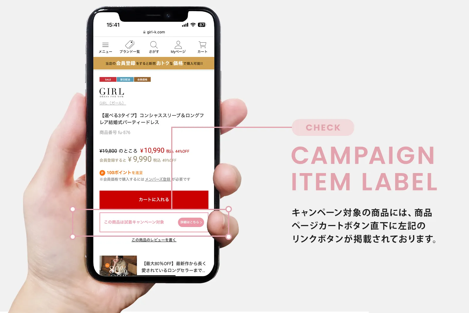 気になるデザインが複数あるなら、試着キャンペーンを利用しましょう。あなたの求めるアイテムか実際に着比べることができます。